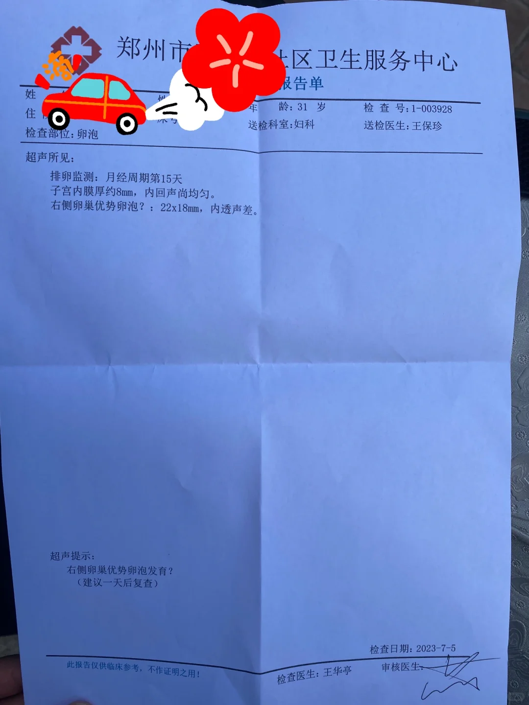 今天早上去社区医院测了卵泡